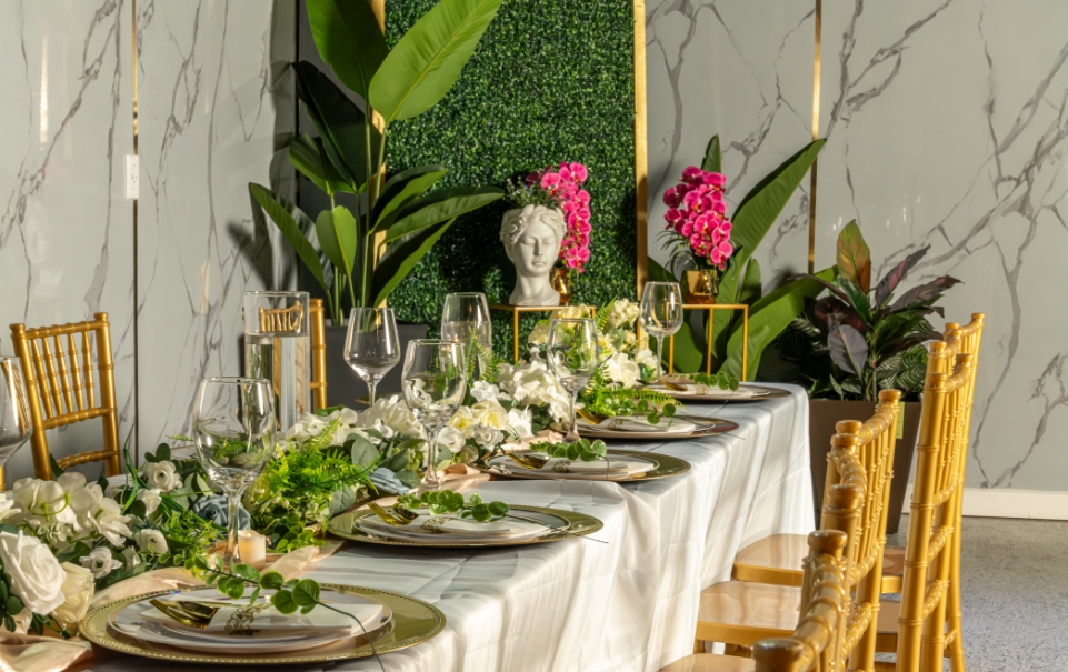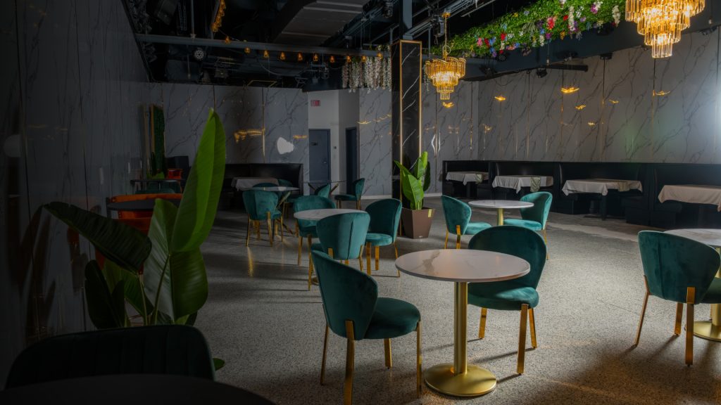- Turnkey experience with tables, chairs, lighting, ambiance included